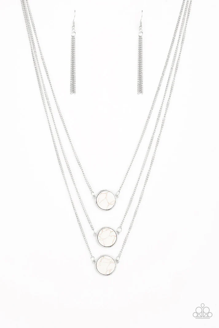 Three flat white stones are pressed into sleek silver frames and layered below the collar for a chic finish. Features an adjustable clasp closure.
