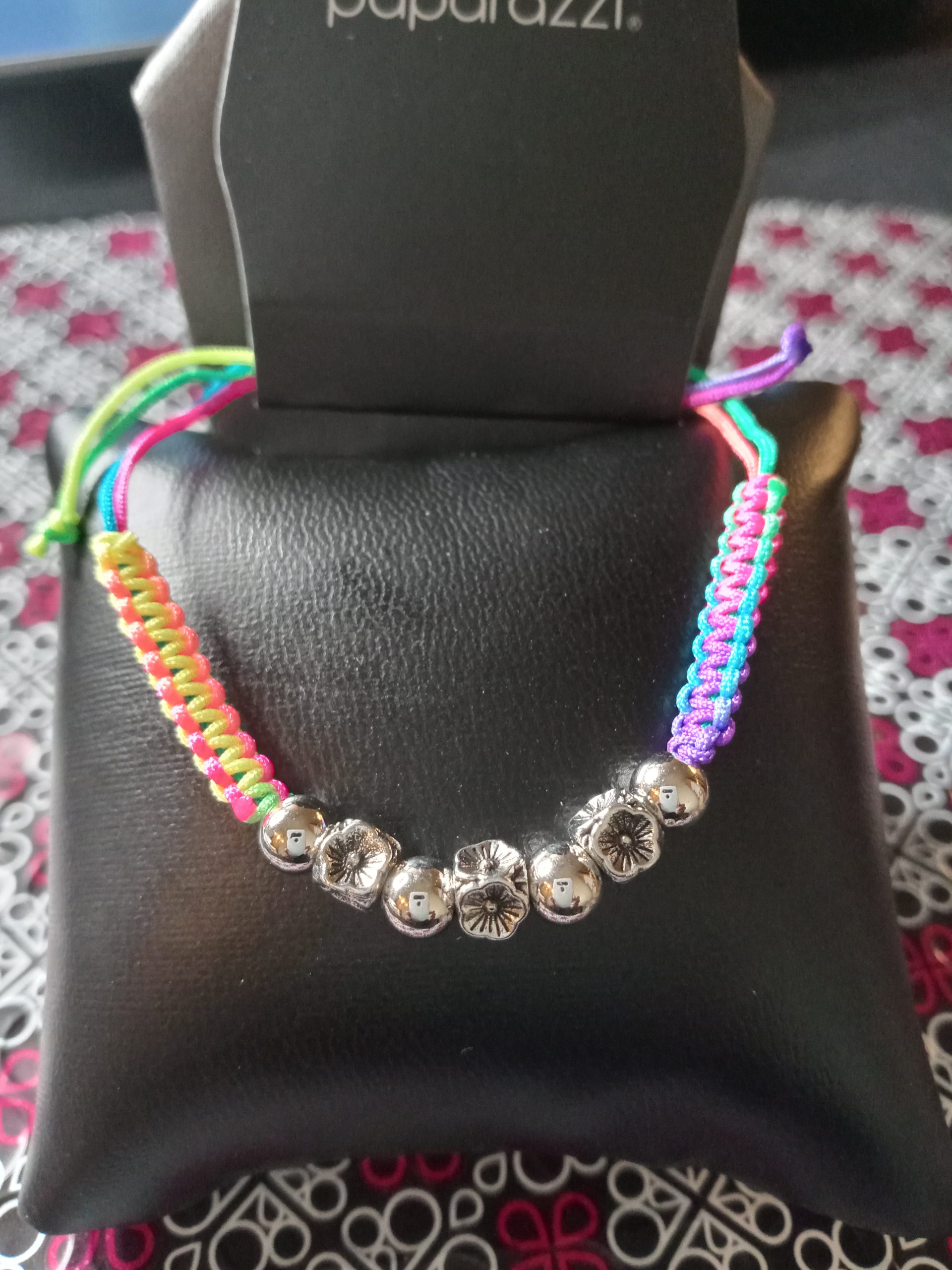 Featuring classic silver beads and antiqued floral accents, the corded bracelets in the neon shade of multicolored. Bracelets feature adjustable sliding knot closures.