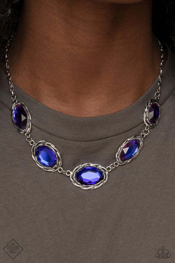 Necklace: "Regal Renaissance" (P2ST-MTXX-094HQ)- Brushed in a subtle metallic finish, a collection of variegated oval multicolored purple gems connect end to end along the collar. Antiqued silver frames, embellished with a layered rope texture, wrap around each of the brilliant gems for a rustically refined finish. Features an adjustable clasp closure.